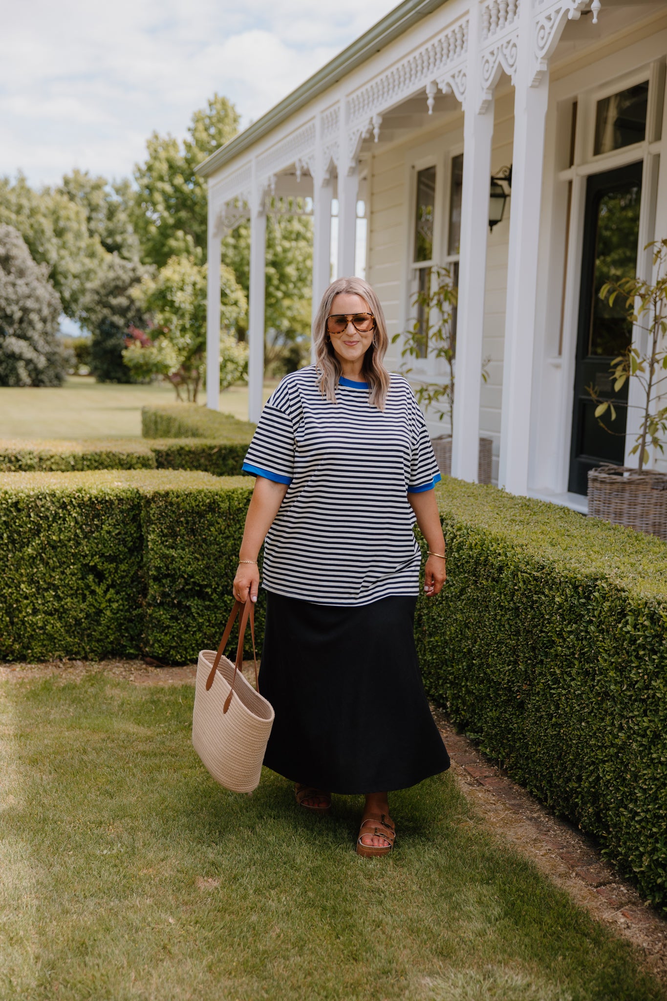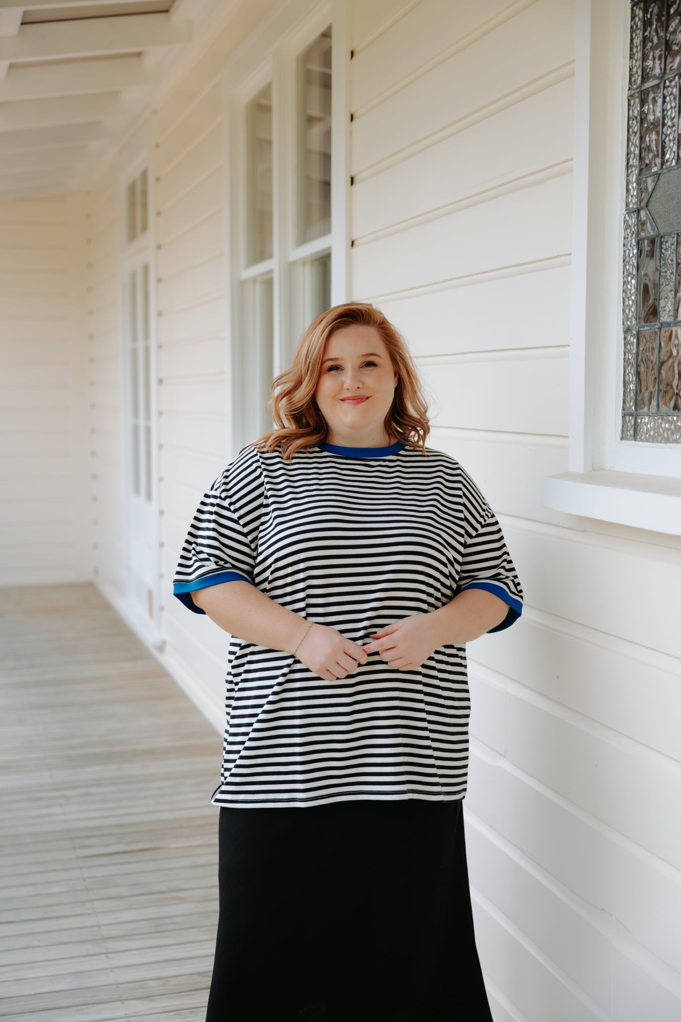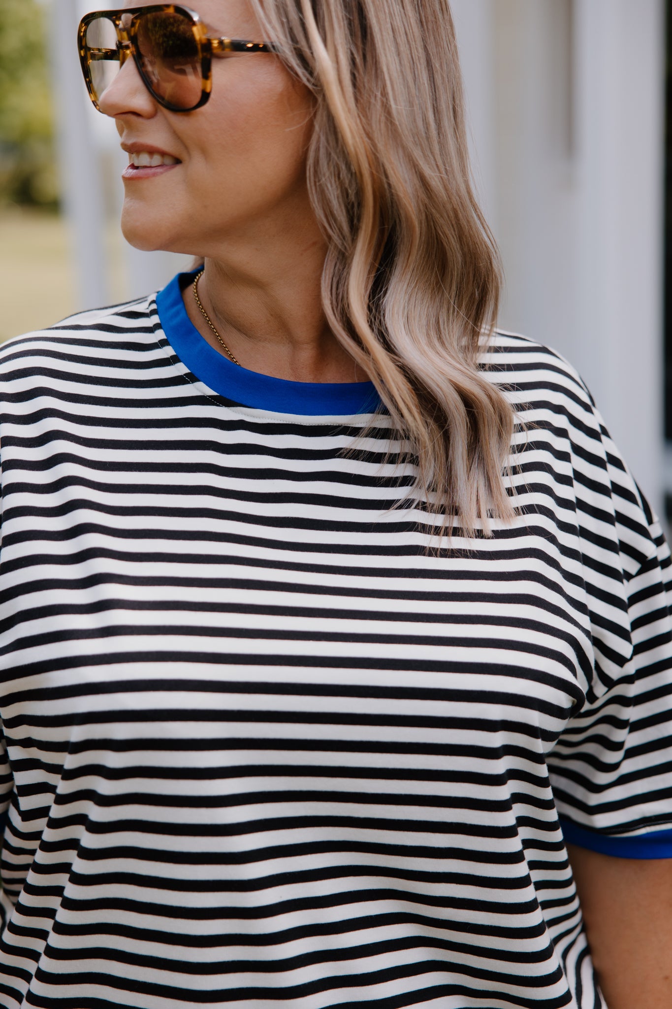Oversized Band Tee - Black & White/Cobalt