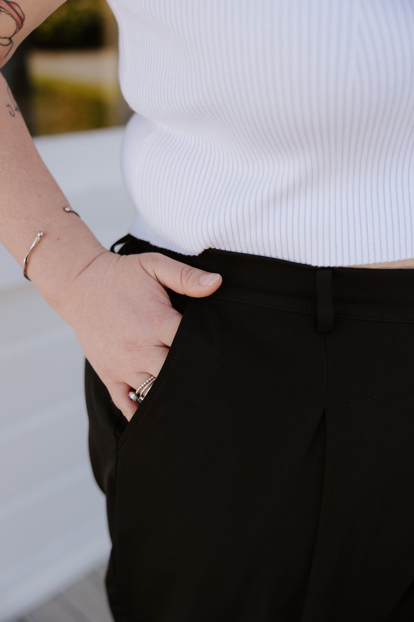 - Smooth flat front waistband