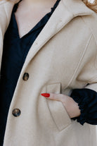 This is the piece you throw on and instantly feel put-together. Crafted from a premium wool blend, it’s warm without feeling bulky and drapes just right over whatever you’re wearing. The high neck and button detail give it structure, while the relaxed fit keeps things effortless.