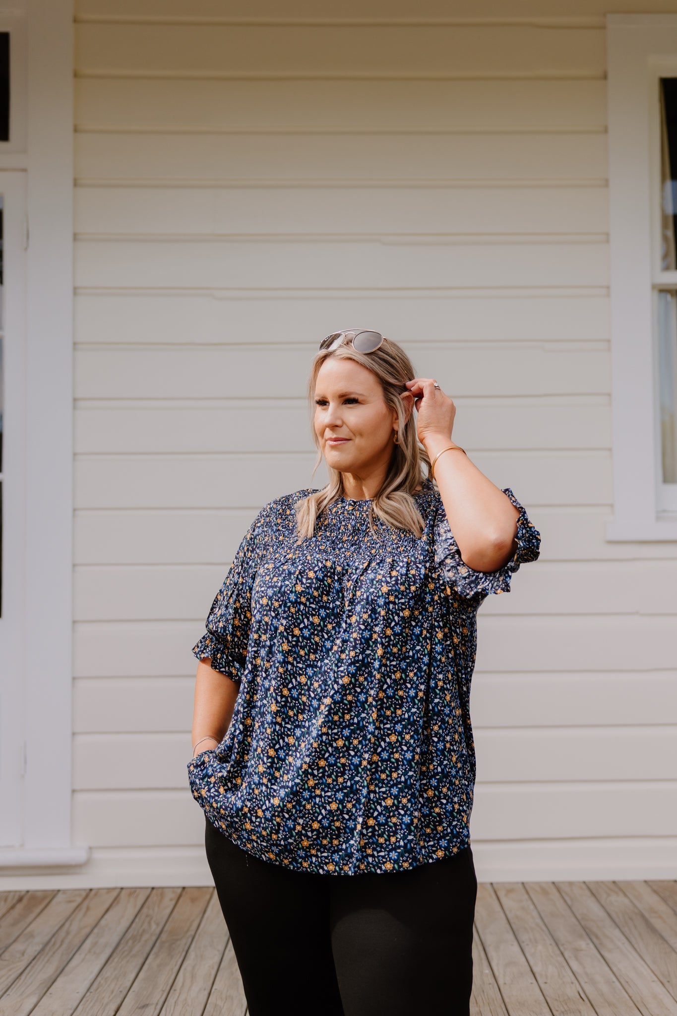 Clara Top - Navy Floral