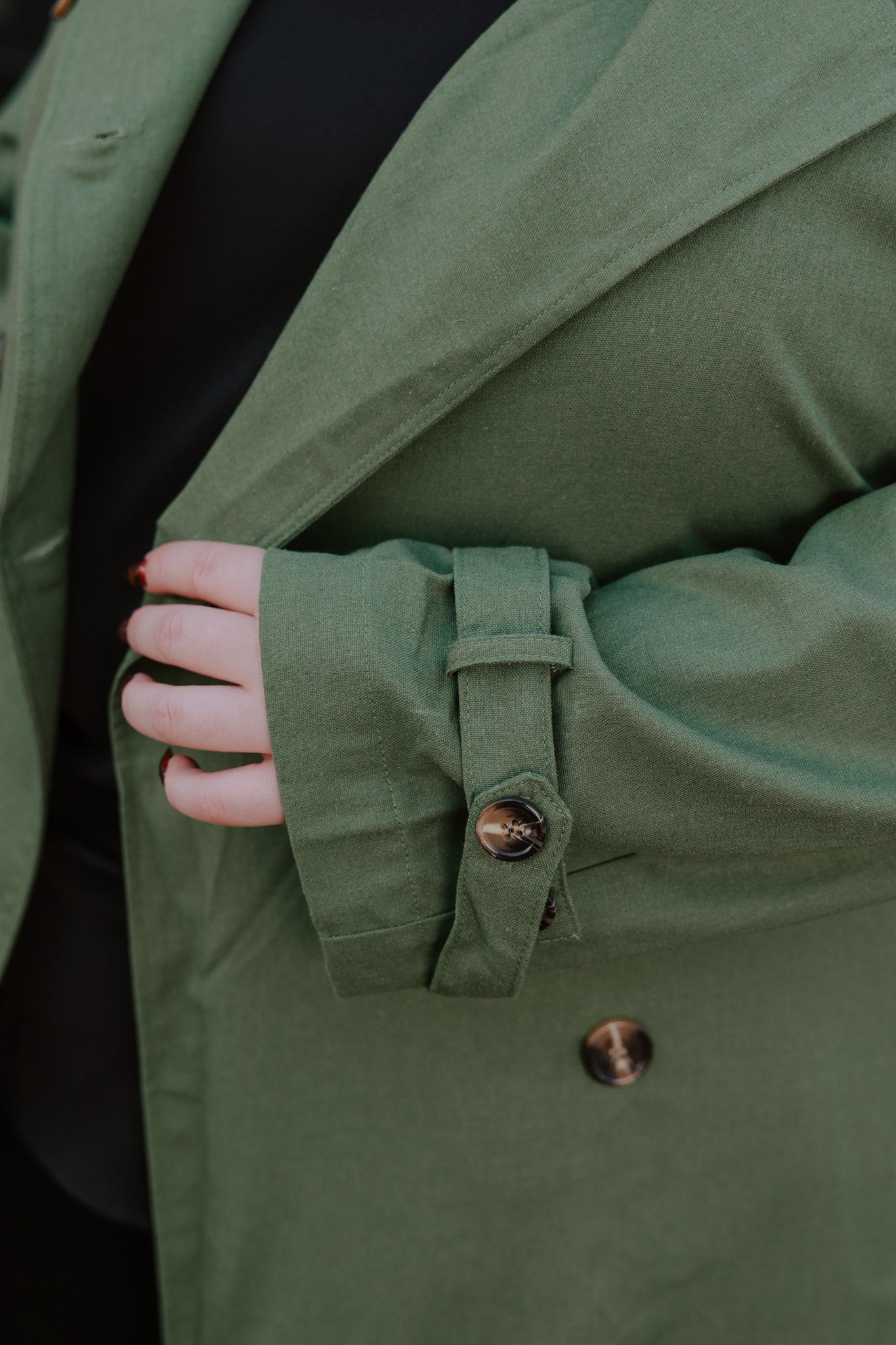 - Classic trench details without the heaviness