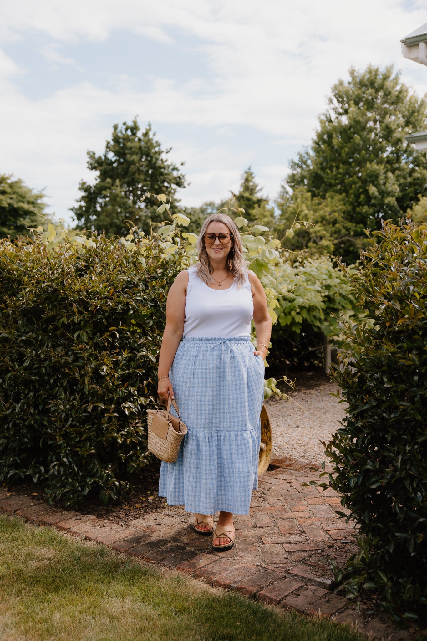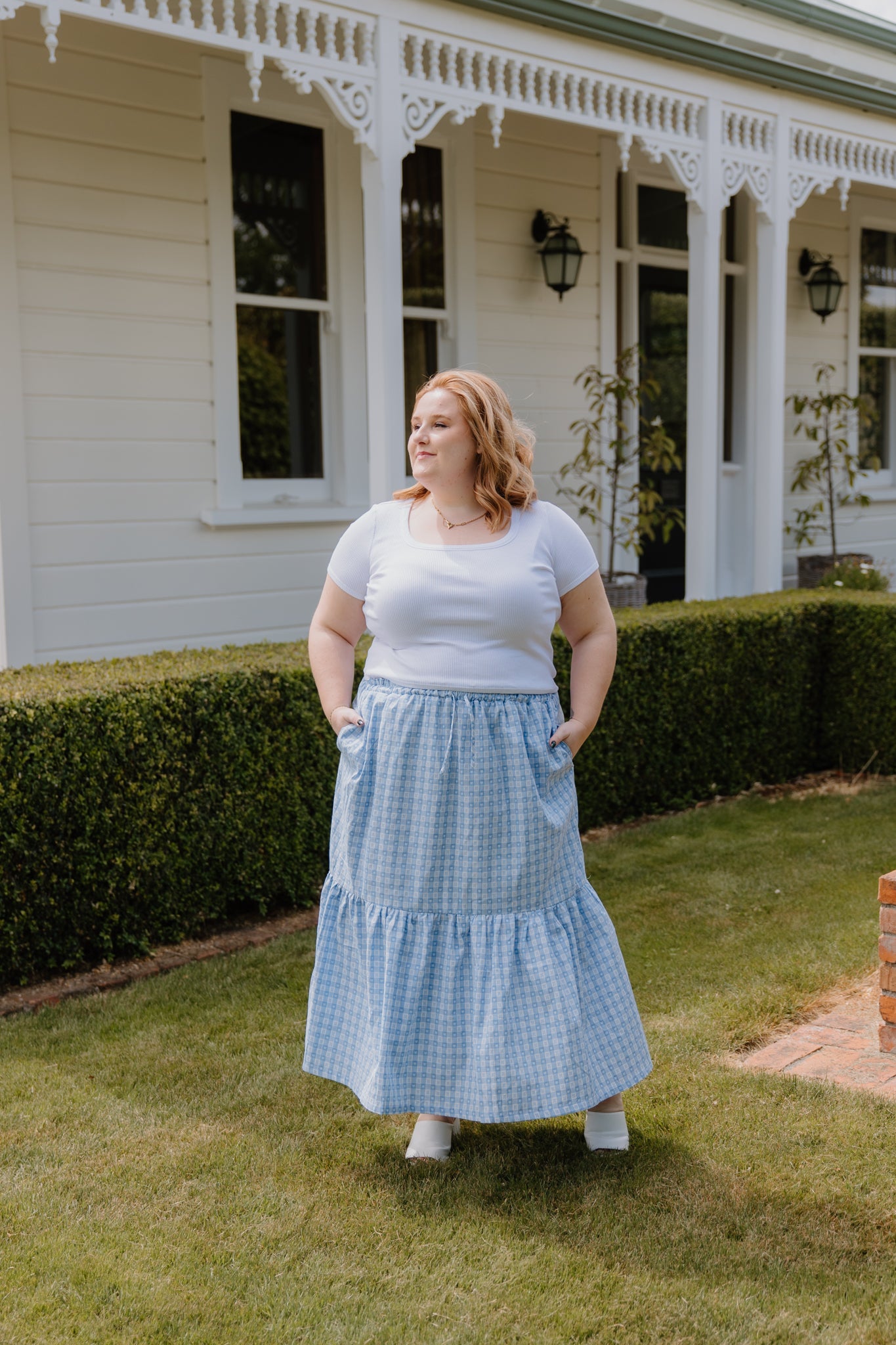Sage Skirt - Blue Check