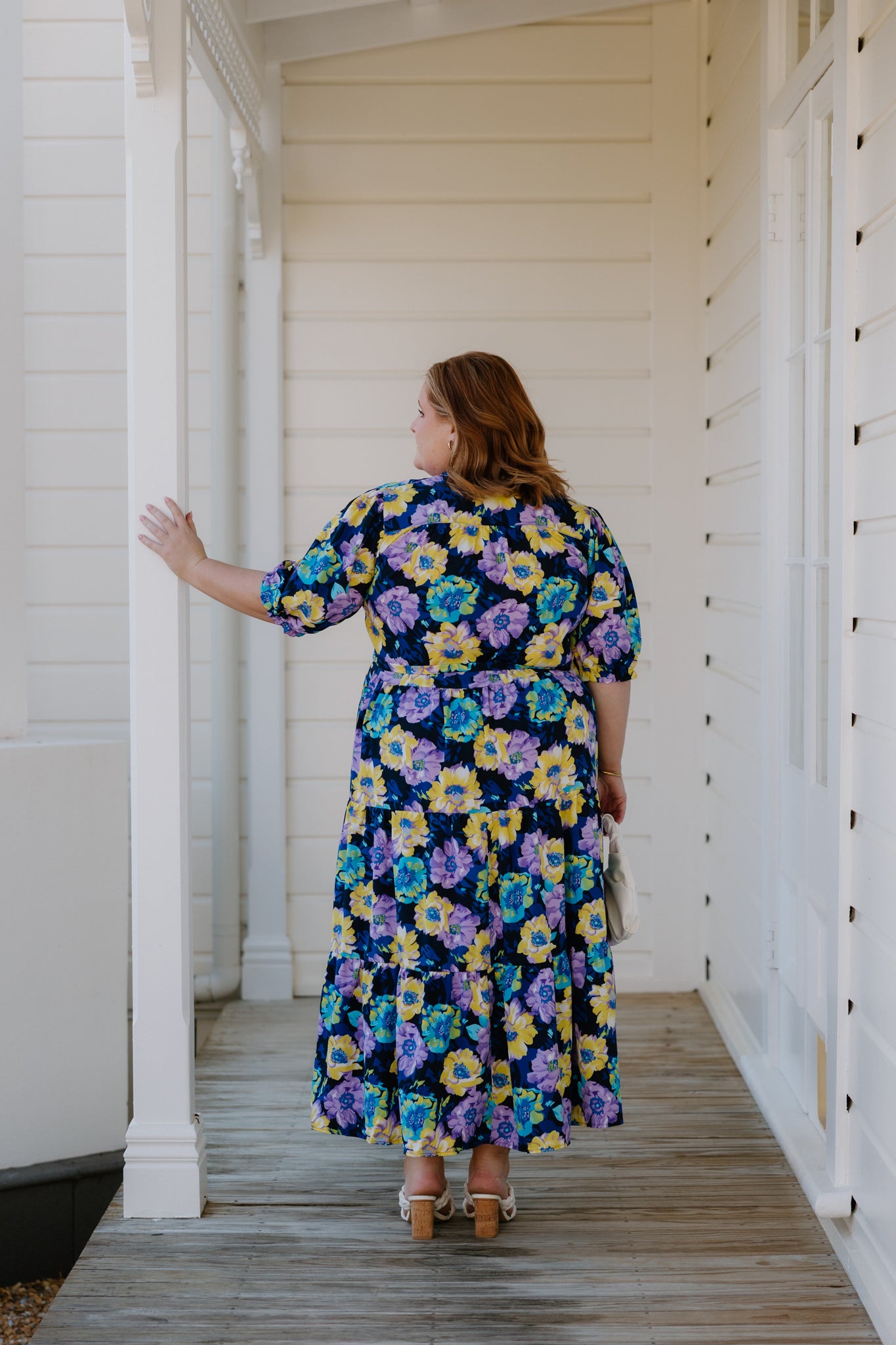 August Dress - Navy-Purple/Yellow Flower