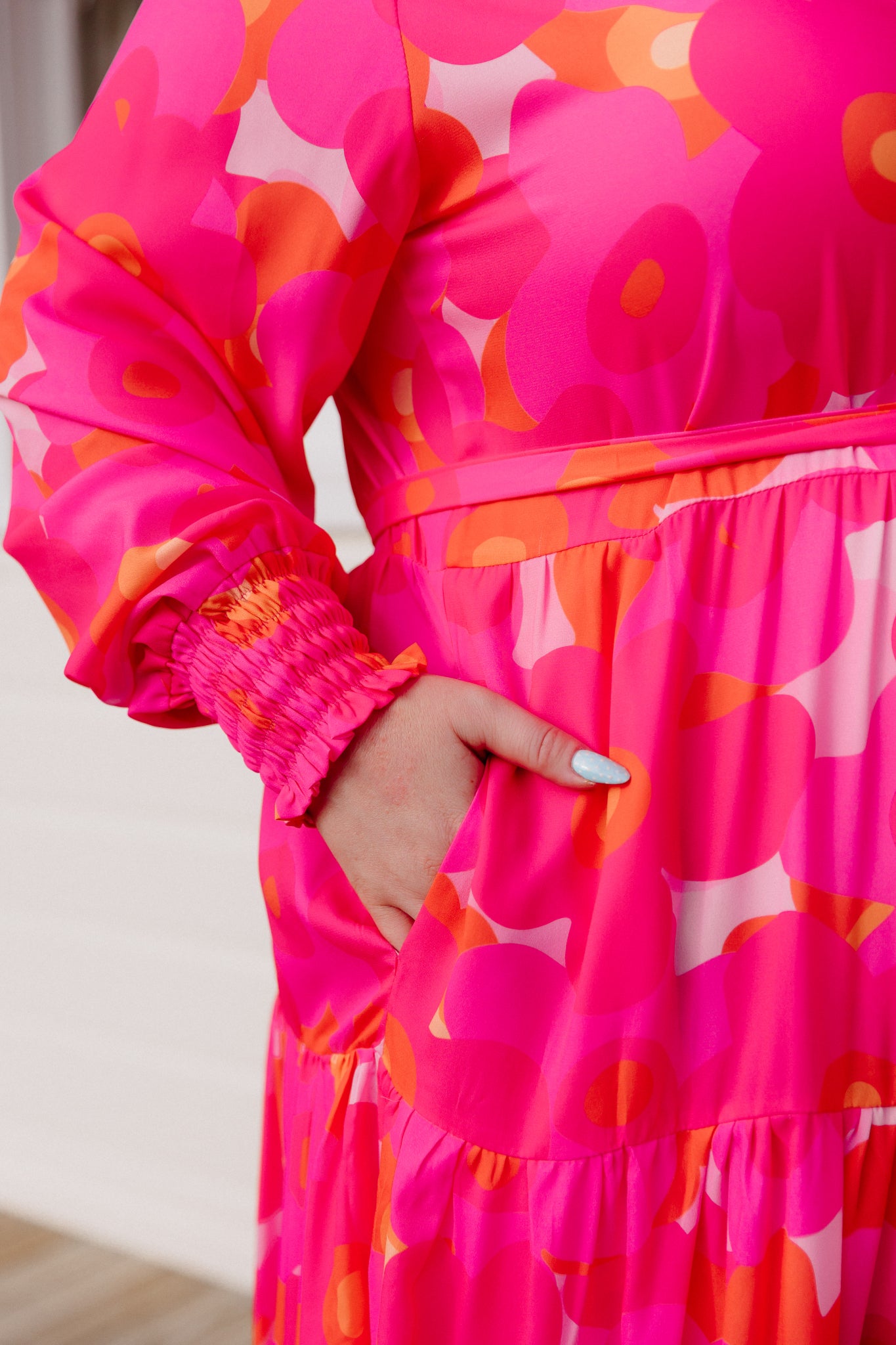 - Long sleeves with soft shirred cuffs