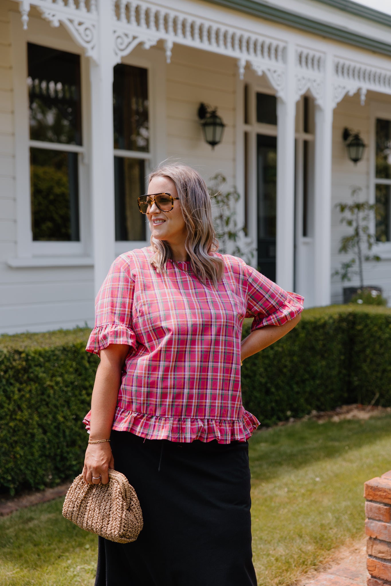 Odette Blouse - Pink Plaid