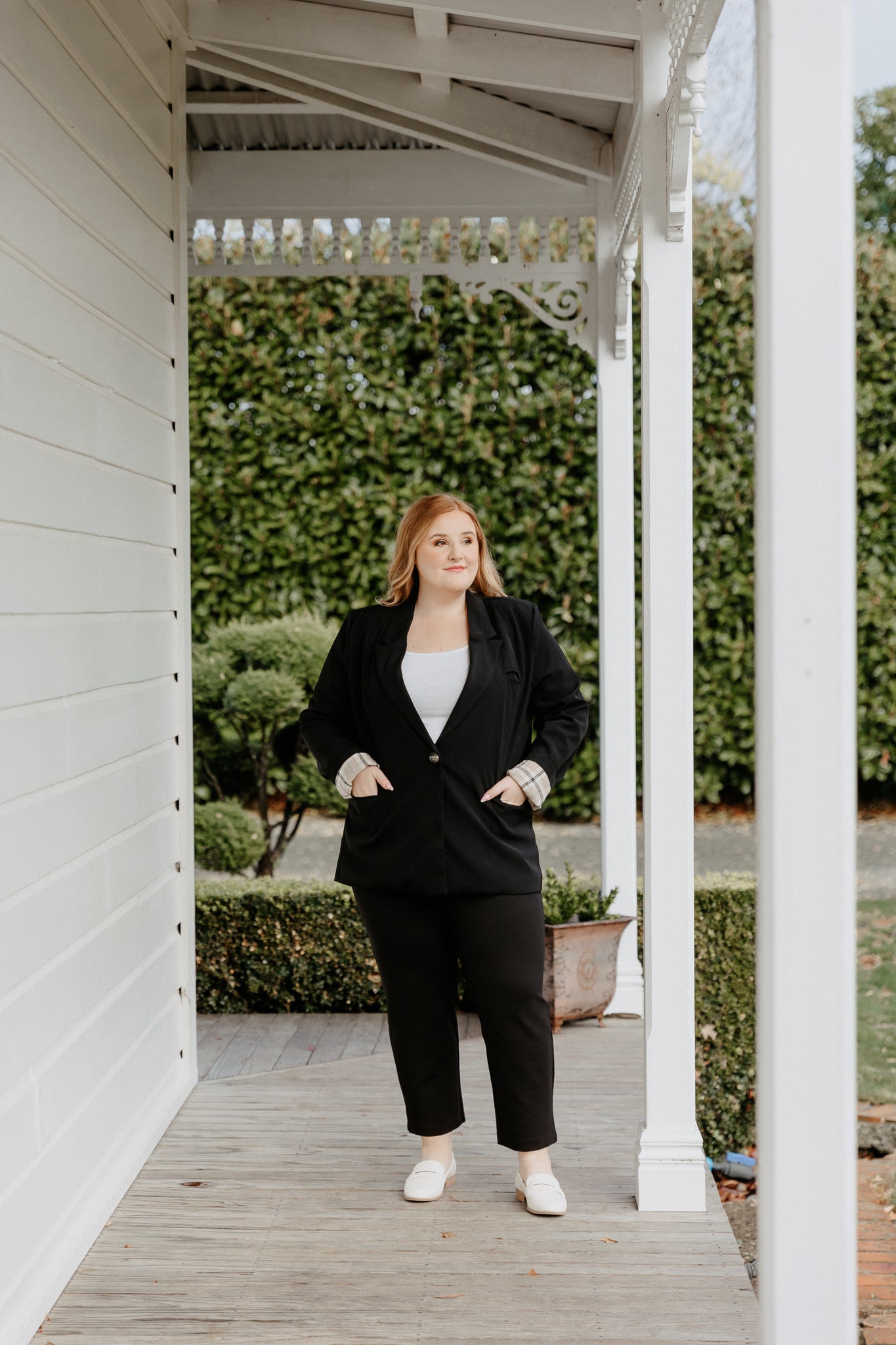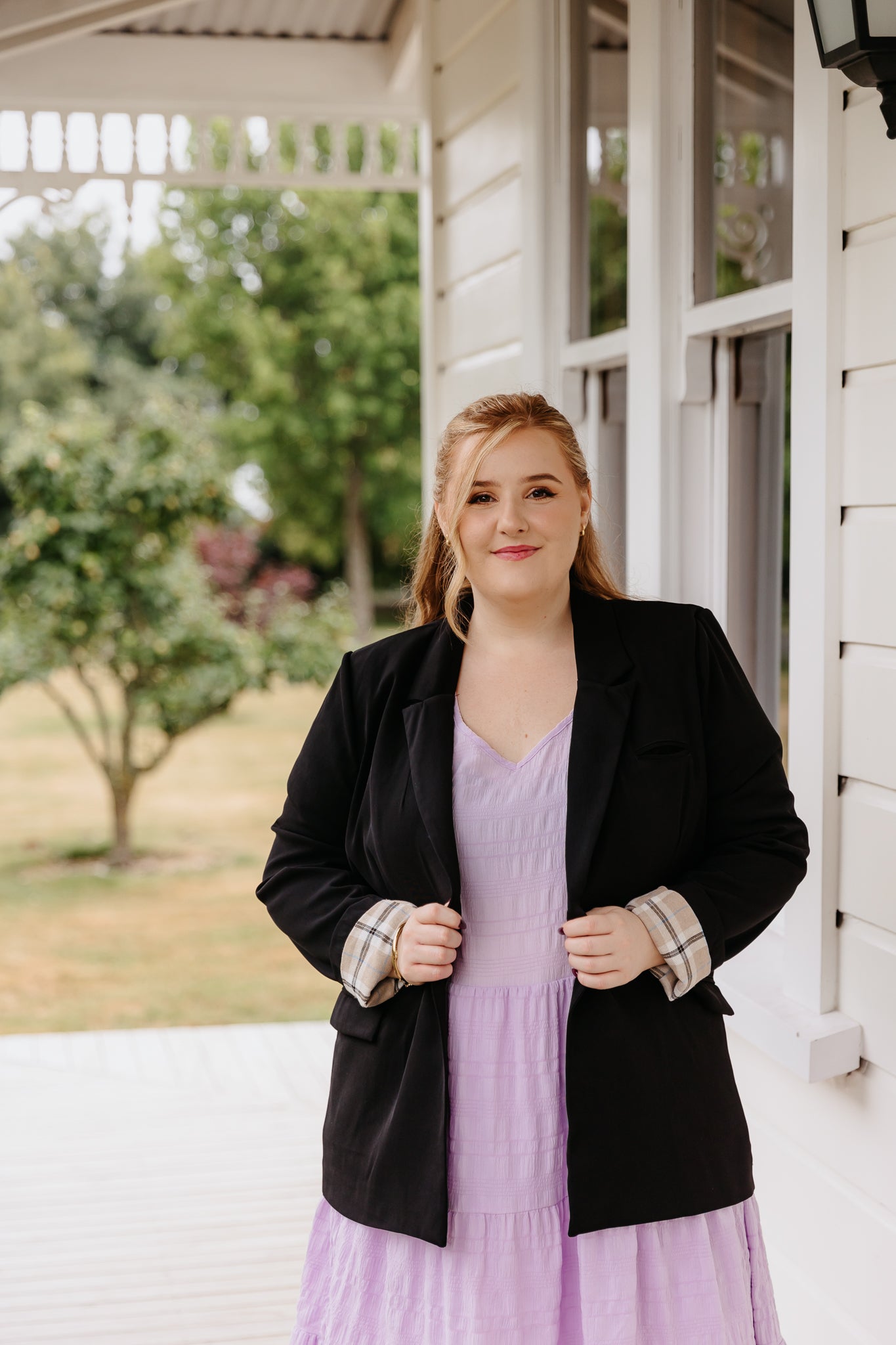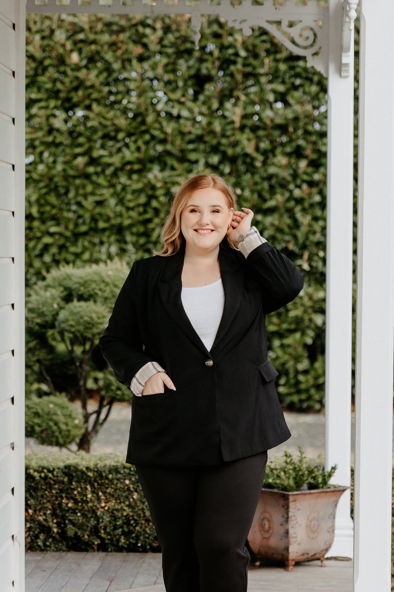 Boyfriend Blazer - Black/Beige Plaid