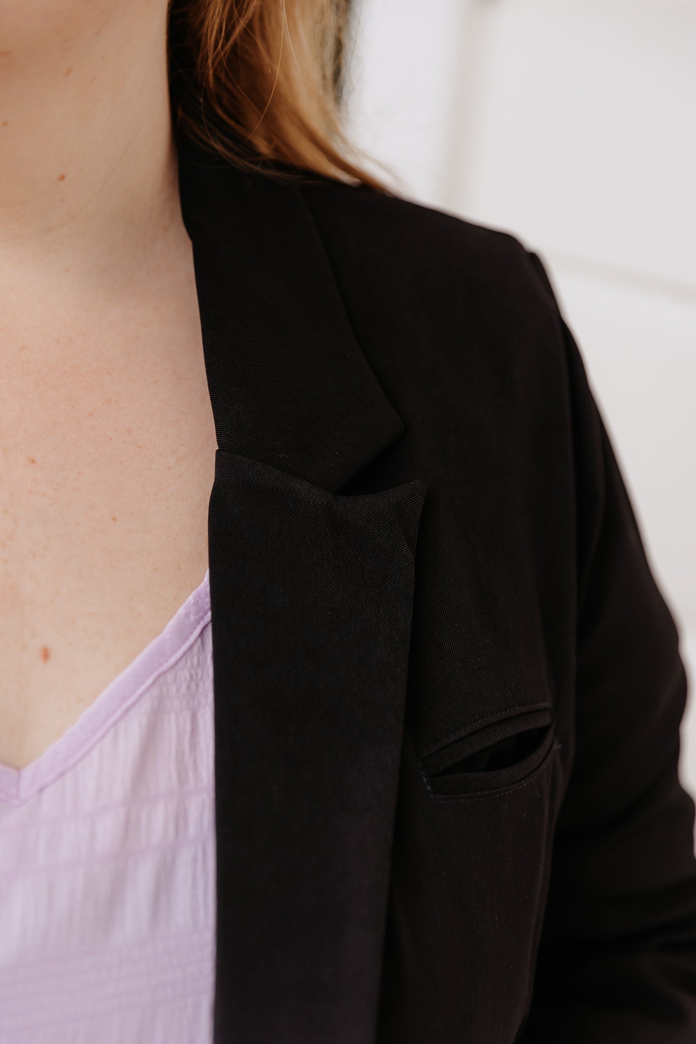 - Classic sharp lapels